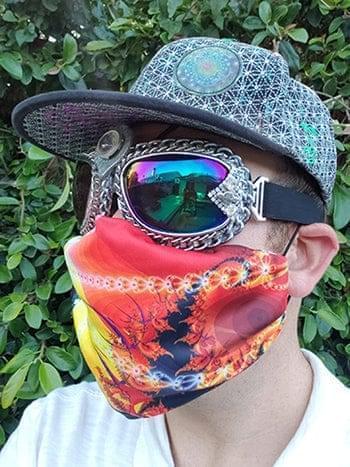 This bandanna is easily made into a MASK. You can view the video below and the bandanna folds into an 8 layer fabric filter mask!!! Look cool and STAY SAFE!!! Made with high-tech, ultra-breathable poly material and amazing artwork printed with high resolution sublimation techniques. Dip into ice cold water for maximum dust and heat protection this summer and use as a dust mask when the festivals finally return!!! Once you are done using it as a mask it is still a COOL bandanna and the 25x25" size makes an awesome art poster for your house as well! So many uses!!!